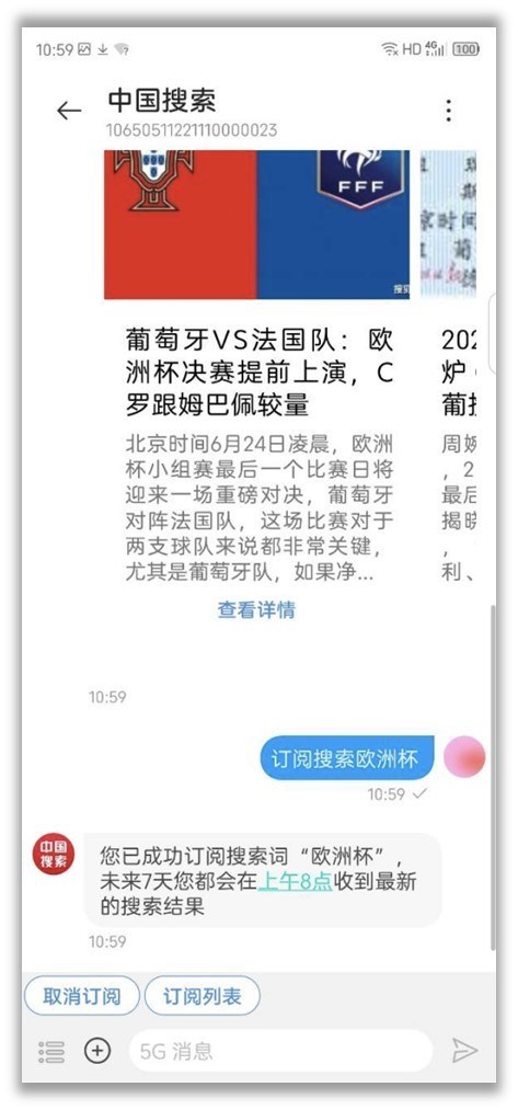 一起,我国查找5G音讯特有“订阅查找”模块,将“人找信息”转变为“信息找人”:用户在谈天界面发送关键词并挑选订阅后,搭载人工智能技术的谈天机器人(Chatbot),可及时为用户精准抓取内容并及时推送。