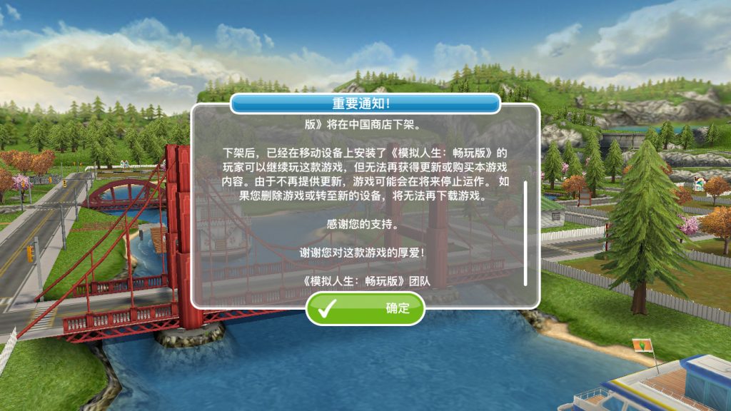 (The Sims FreePlay)忽然在游戏中向我国玩法发布公告称,为恪守相关规定,这款游戏将从 2018 年 7 月 5 日起在我国商铺下架。