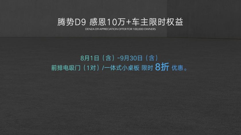 腾势轿车累计用户现已打破10万,在腾势N8的上市之际,腾势10万+用户感恩季正式敞开。为满意用户差异化的纯电续航需求,发布会上腾势D9加推款型DM-i尊享型同步上市,纯电续航98km,搭载45kW快充和6kW对外放电功用,价格34.98万元!新车将与现有的190公里、180公里纯电续航版别构成弥补,深度满意不同用户所需,继续扩展在MPV商场的抢先优势,冲击月销15000+的销量方针。