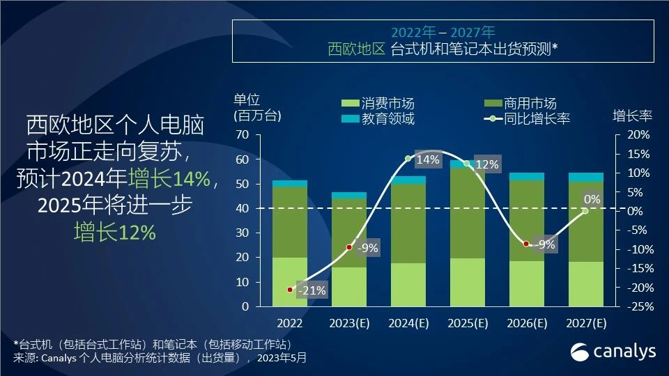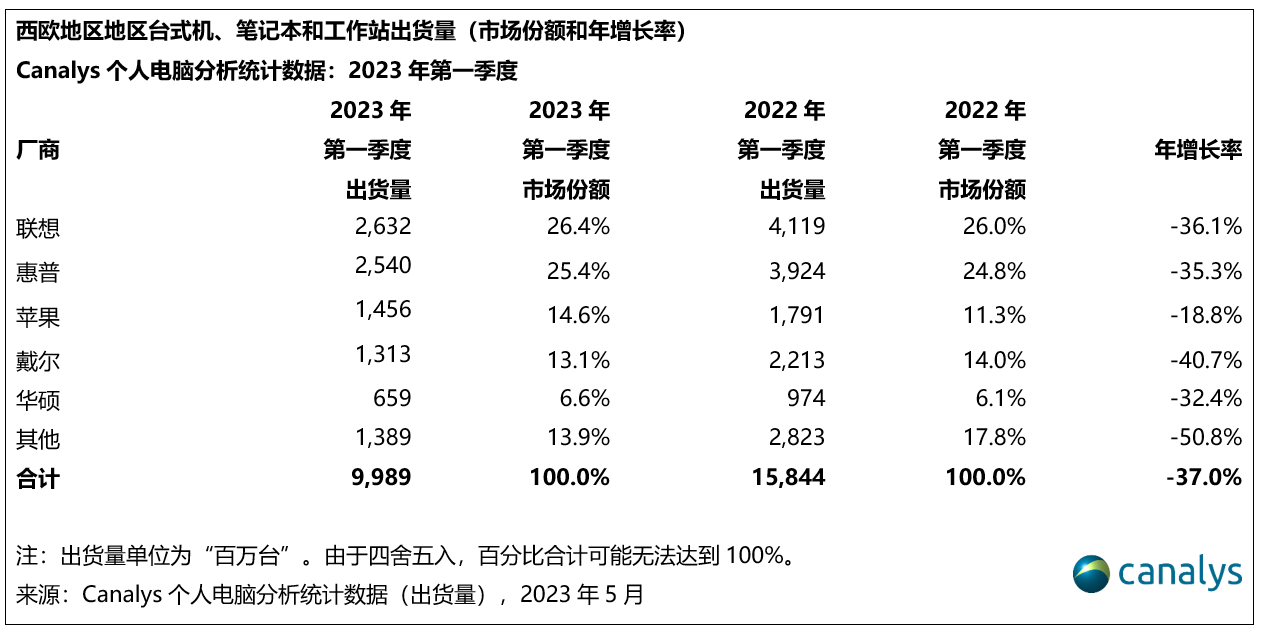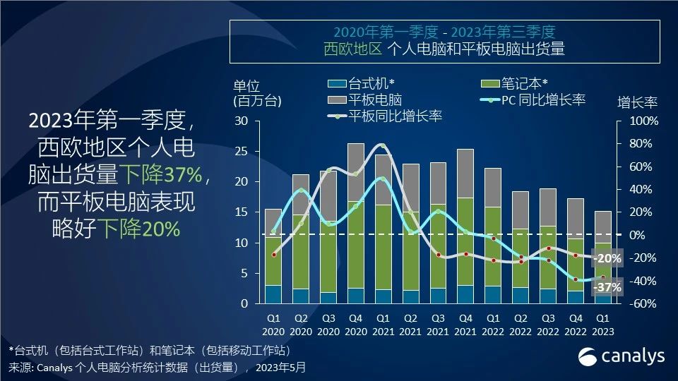 Canalys:2023 Q1 西欧地区个人电脑市场骤降 37%,复苏在望